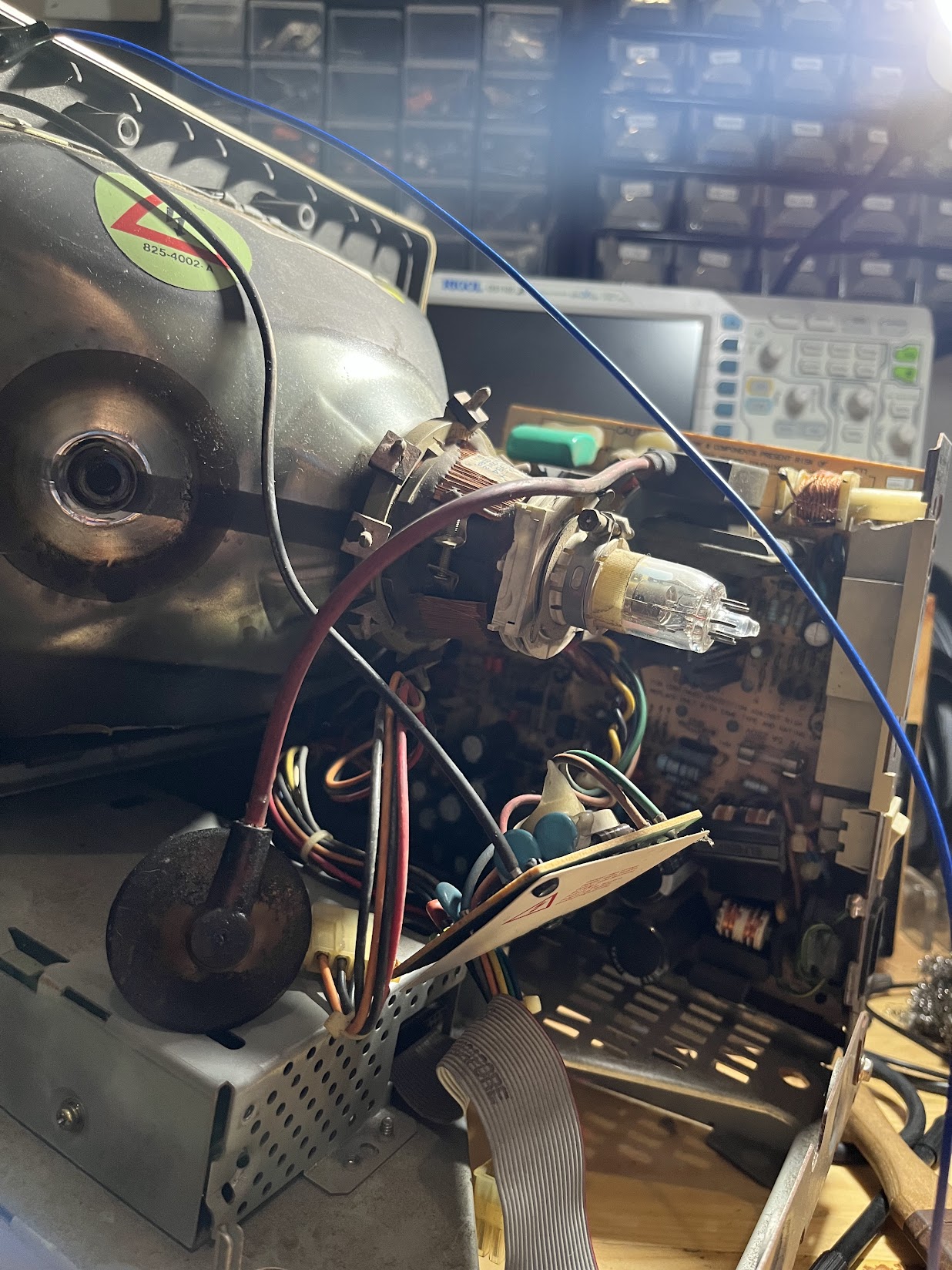 After removing the anode cap, I need to remove the connector on the backside of the CRT. I also need to be careful about the vacuum tubes because it’s very fragile.