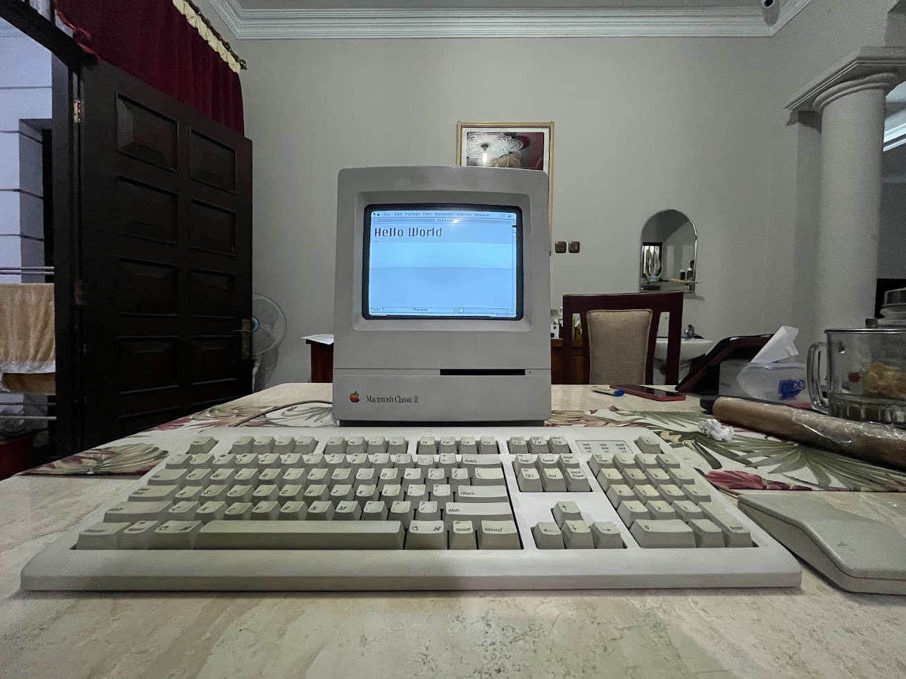 I found a nice and complete collection of Macintosh Classic II. It included the Mac itself, keyboard, mouse and an external 800k drive. Someone sells this thing on Instagram, and then I contacted the seller to ask about its condition. He said that it was first hand from his uncle and last January 2023 it was tested okay and running. But currently, he didn’t have the power cord to test it. So I decided to do gambling to buy this old machine, I hope that the internal battery is not leaked or better it has already been removed.