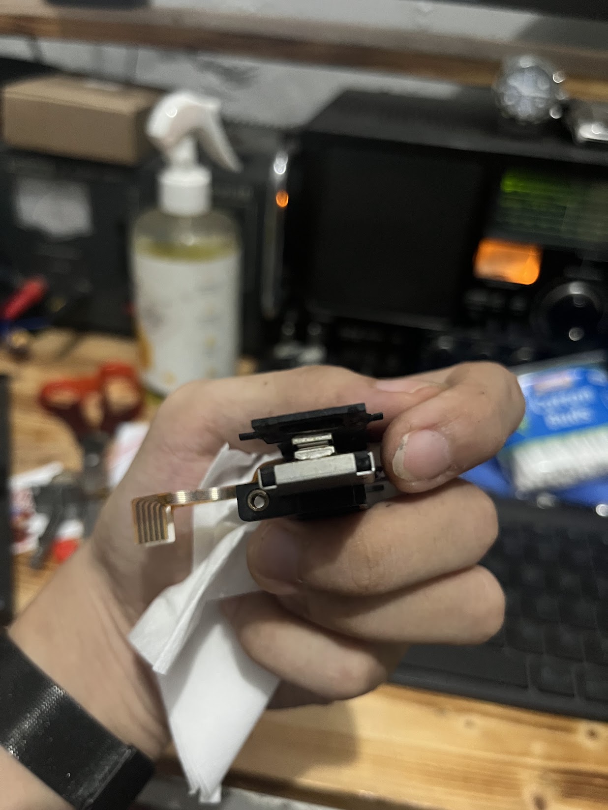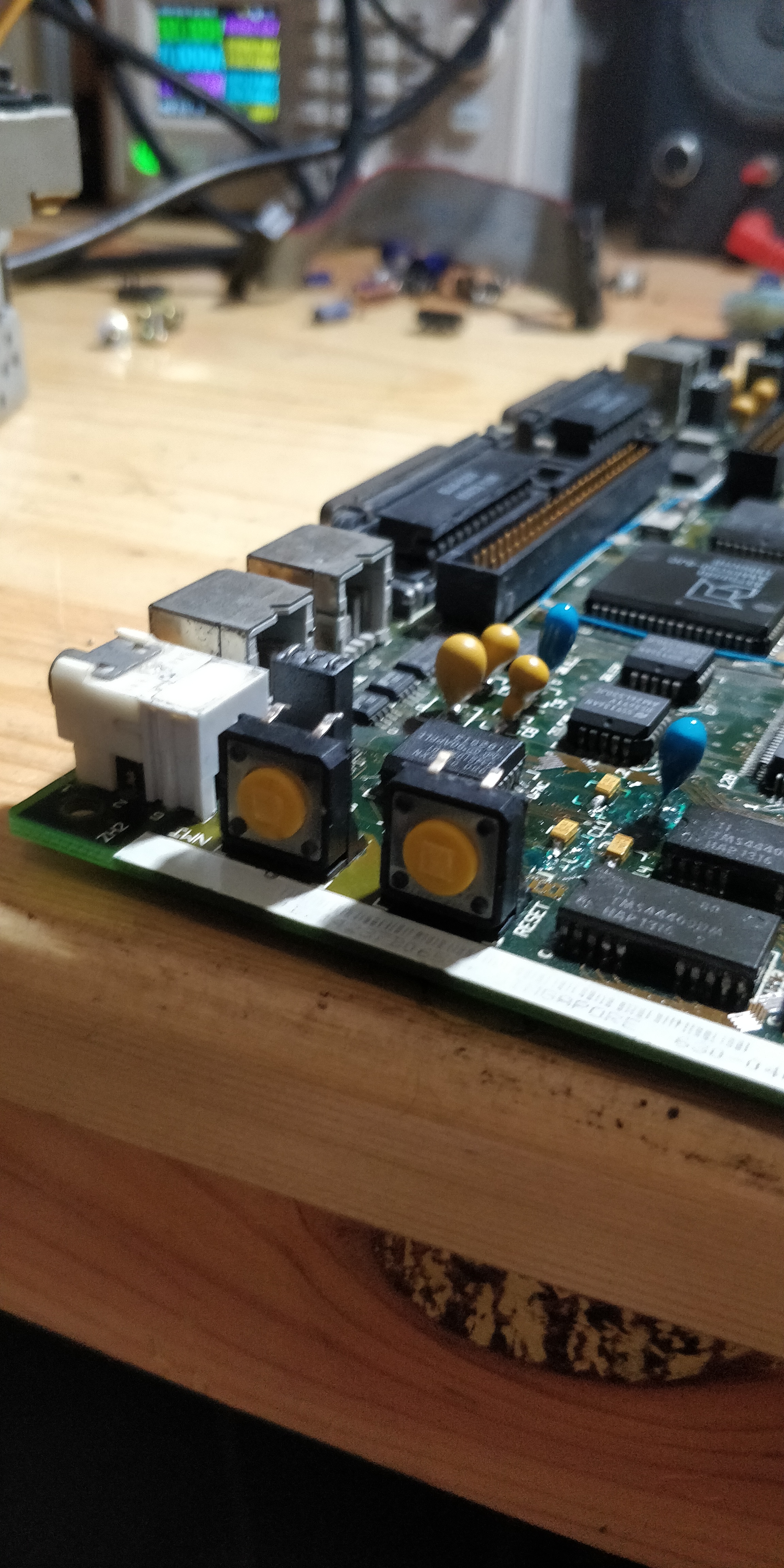I forgot to tell you that I did ultrasonic cleaning using a Relife PCB cleaner. And you know what, it destroys thin plastic on the PCB, as Mic Jack cover, and the RESET and INTERRUPT buttons on the side of the PCB. So I decided to replace using the regular push button.