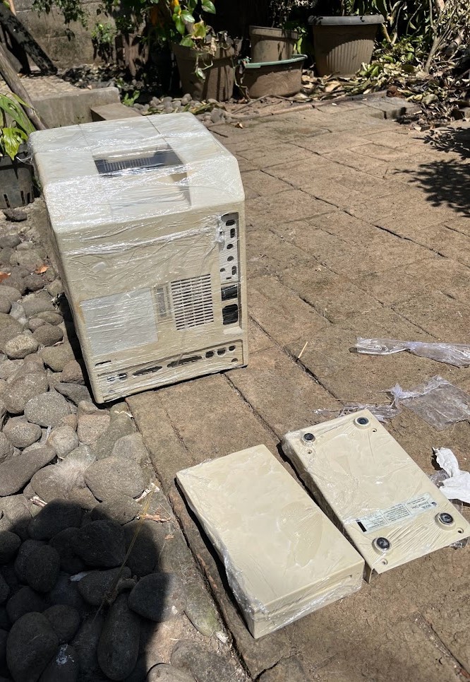 At noon around 1 PM, I was contacted by the cargo courier that they will send a package to my home, and they need me to stand by. Fortunately, I am working at home. So the package came and the wood package was already removed by the courier (I don’t know why they do this without confirming with me first). Everything was complete and arrived safely without any crack on the CRT. Except for the keyboard cable to the computer 😢